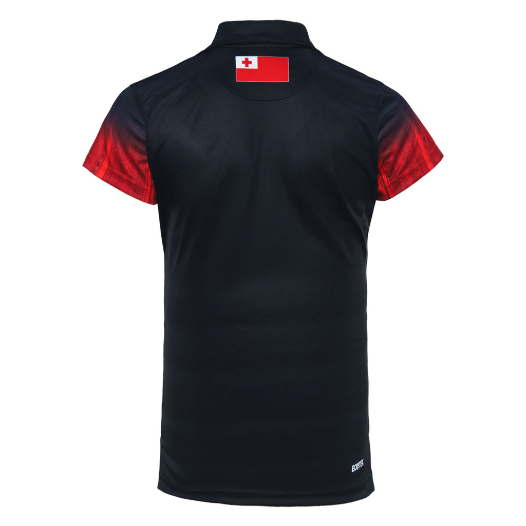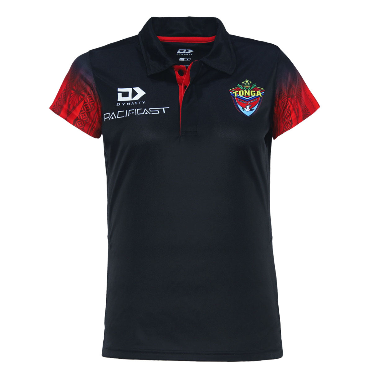 This stylish 2023 Tonga Rugby League Ladies Media Polo features a striking classy design, proudly boasting a modern Tongan Ngatu (Tapa Cloth) design on the sleeves.
